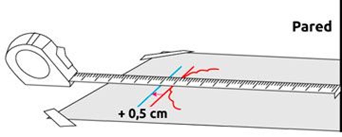 Mide la distancia desde el talón hasta la marca.